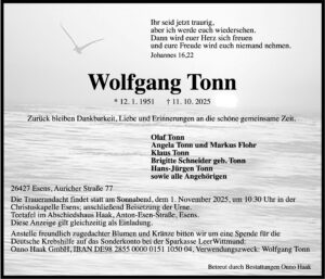 Im Trauerfall Tag & Nacht für Sie erreichbar: 04971/3011